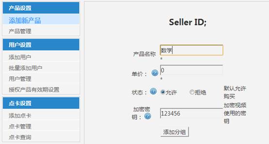 *產品分類是指, 比如可以把視頻劃分成 語文,數學,英語 三門, 然后在后臺限制某個帳號只有播放 語文或數學 這個科目的權限。例如,用戶只購買了語文這門課, 即使他下載了數學或英文的課程, 也無法播放,只能播放所購買的課文課, 這樣有利于商家對不同產品分別收費。我們只限制產品分類數量,并不限制視頻文件總數。