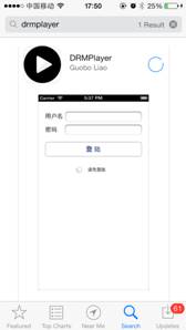 導入完成后,運行iPhone里的 DRMPlayer,輸入測試帳號,用戶名及密碼都是 demo123
