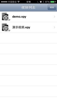 單擊上步“添加”后,會出現下方的對話框,找到“演示視頻.vpy”文件的路徑,然后單擊“打開”,視頻將自動導入到你的iPhone中的DRMPlayer中。